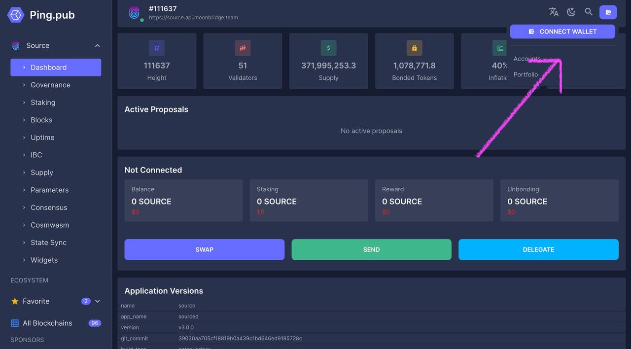 Follow the steps below to access the Source Blockchain.